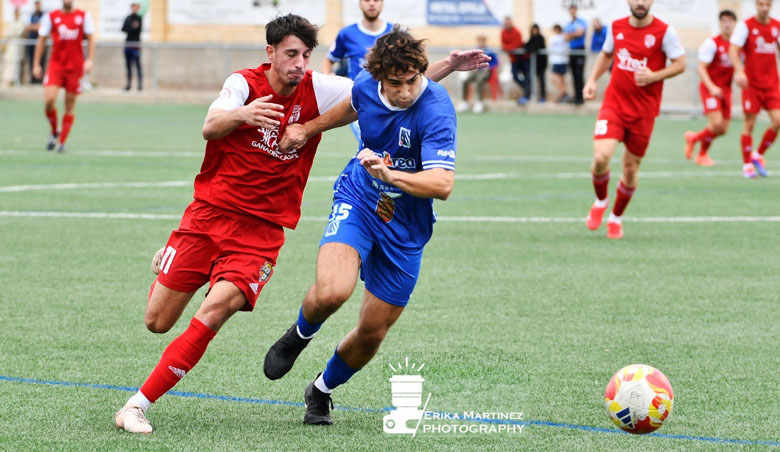 Hugo Romanos y Carlos Ferruz en pleno esfuerzo por llegar al balón. Foto: Erika Martínez Alcalde.