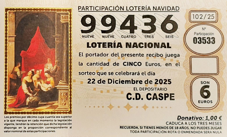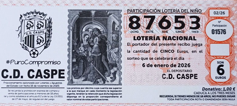 29/10/25 - - - - - - - - - - - - - - - C.Grañena (vpte.) El 99436 es el número de la suerte del CD.Caspe